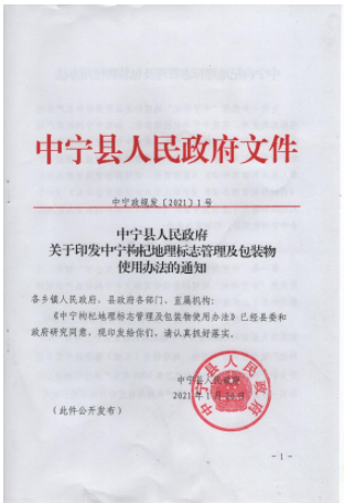 中宁枸杞地理标志管理及包装物使用办法