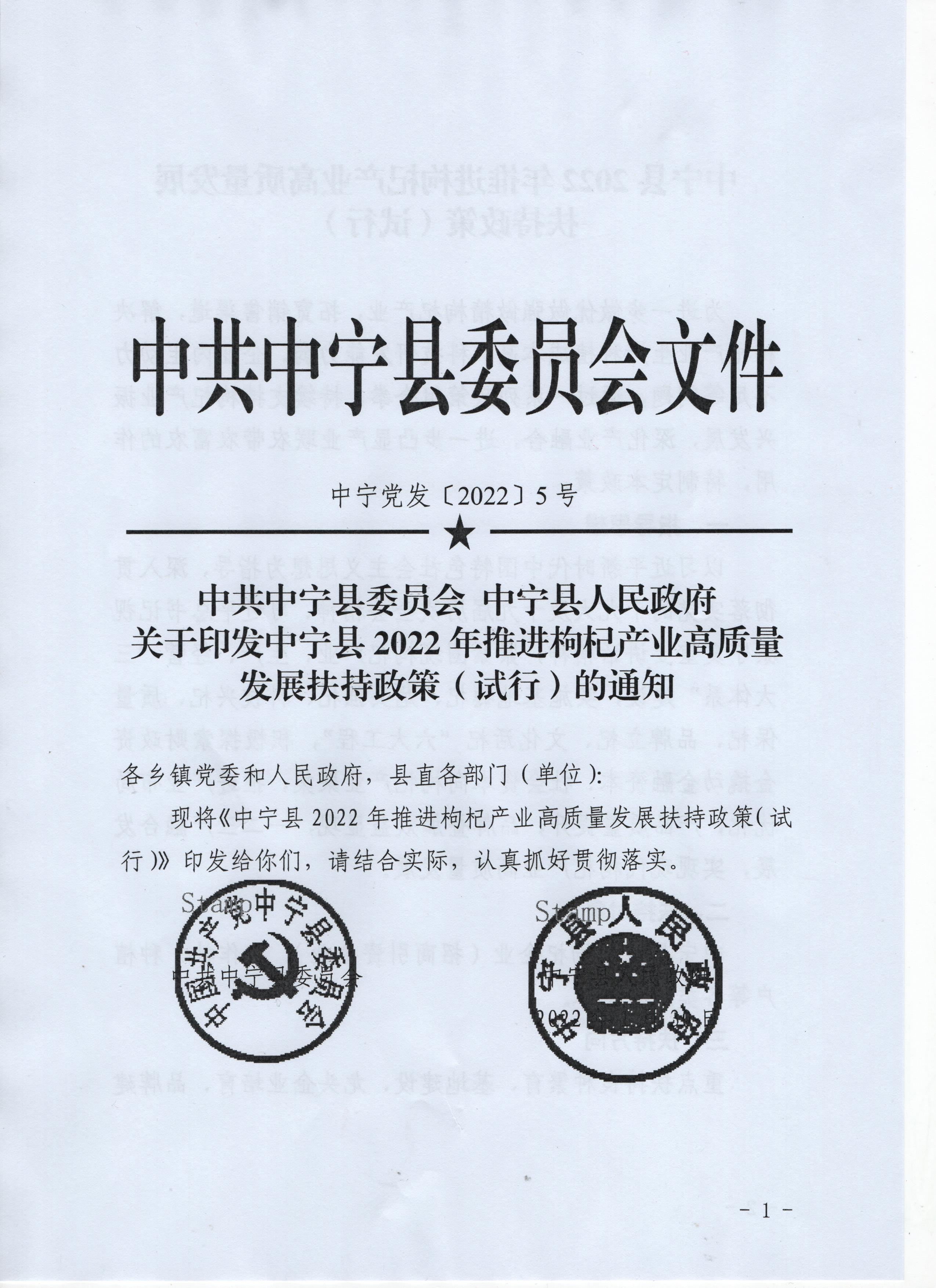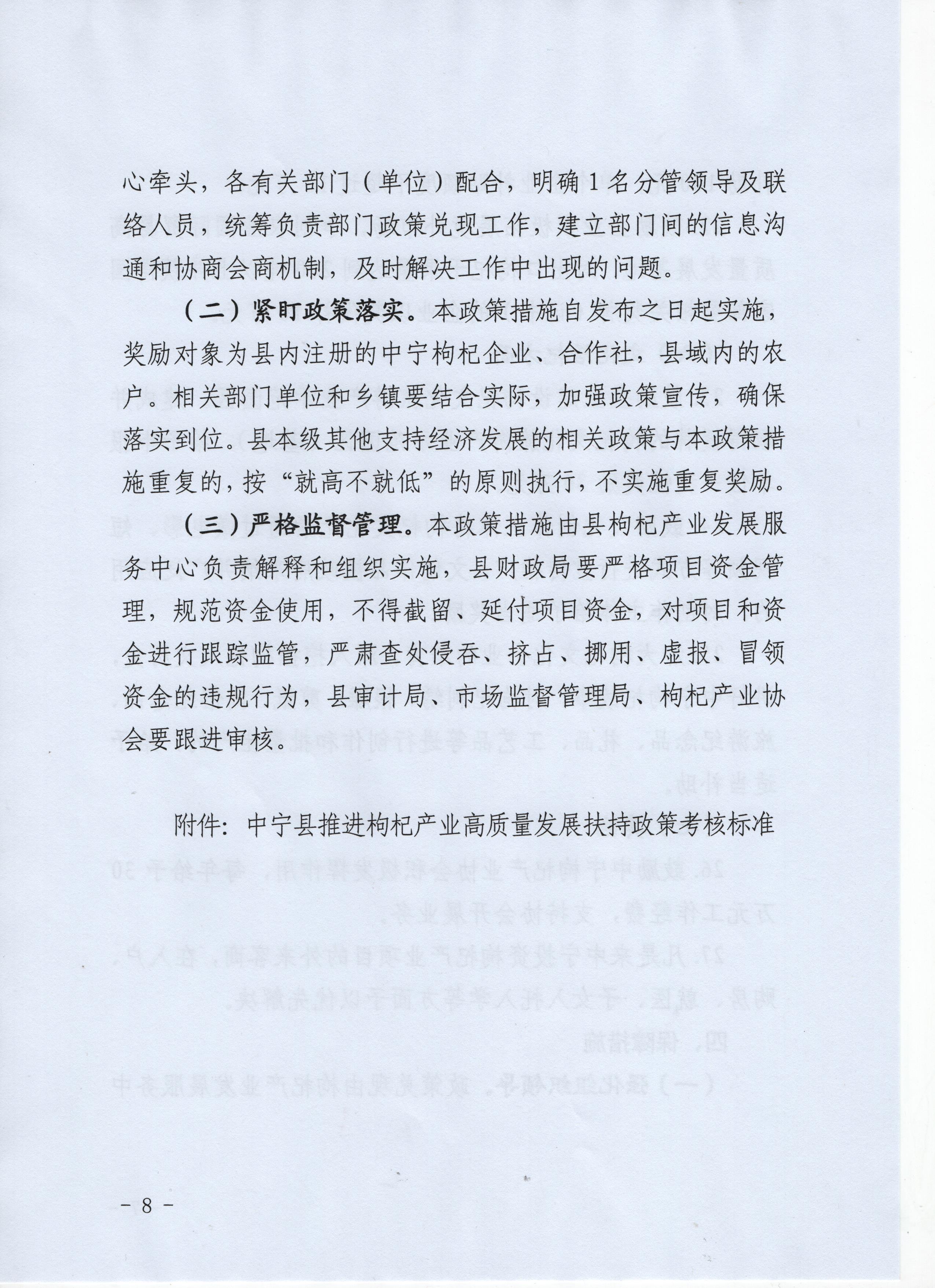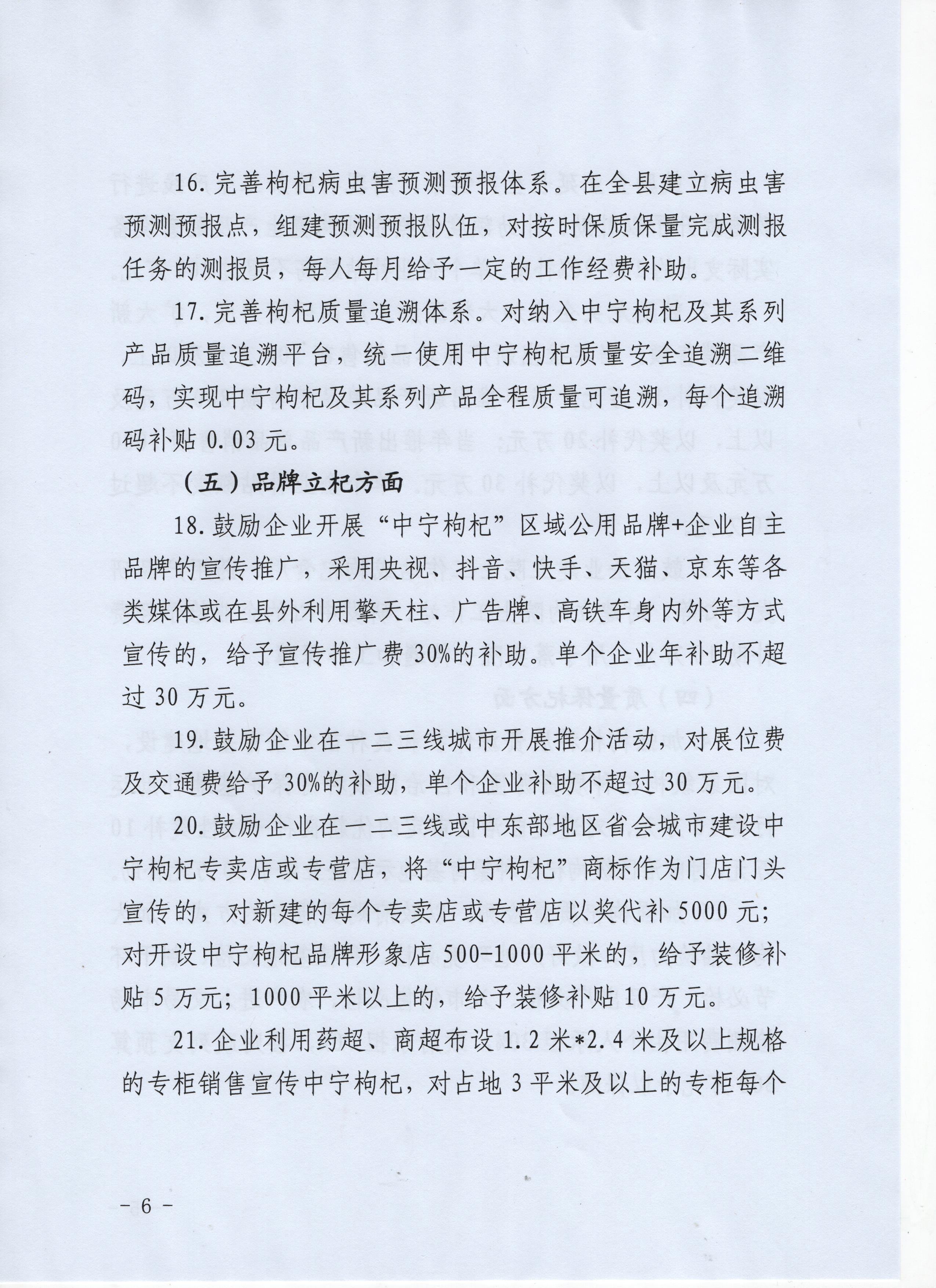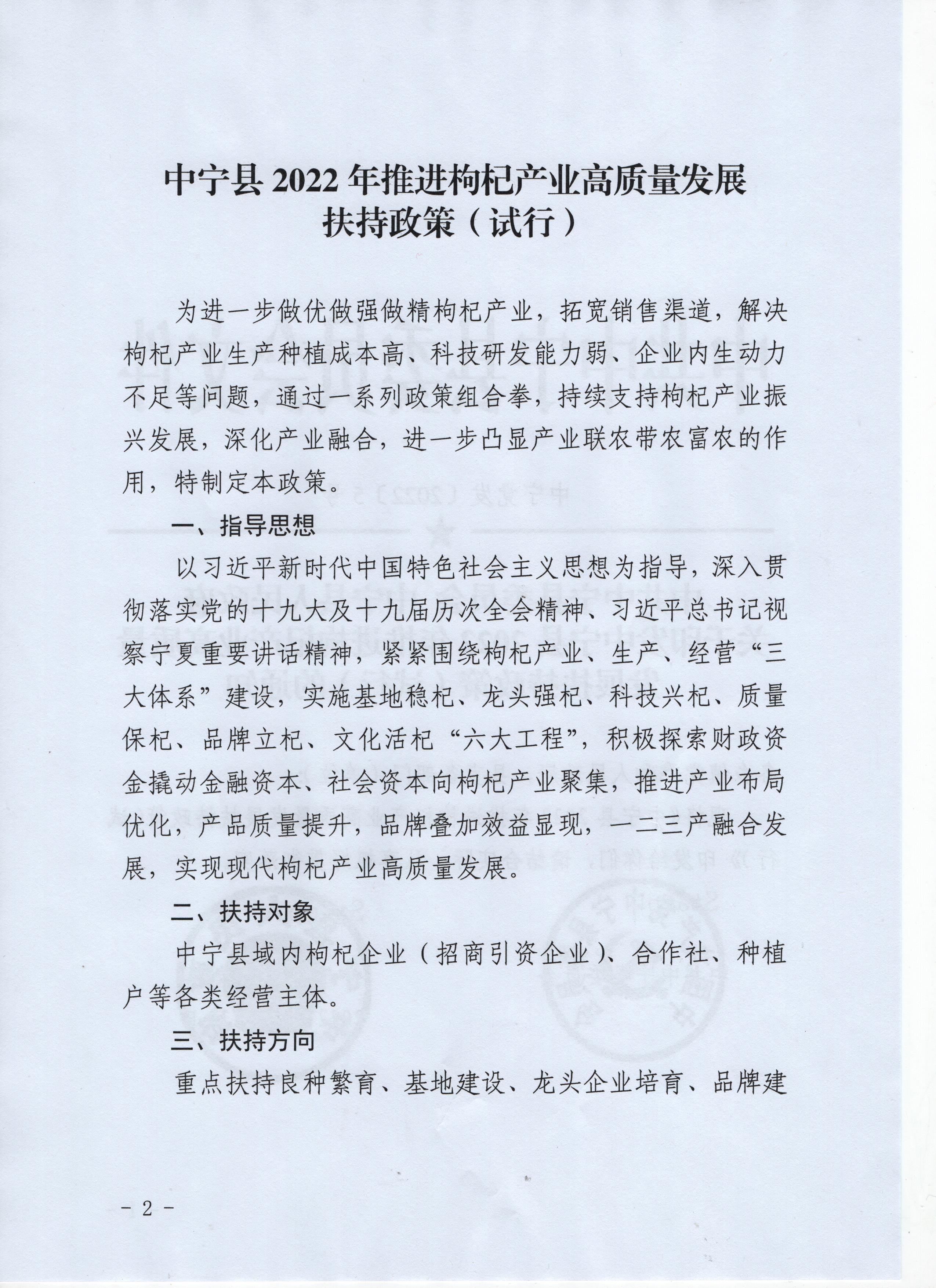 中宁县2022年推进枸杞产业高质量发展扶持政策