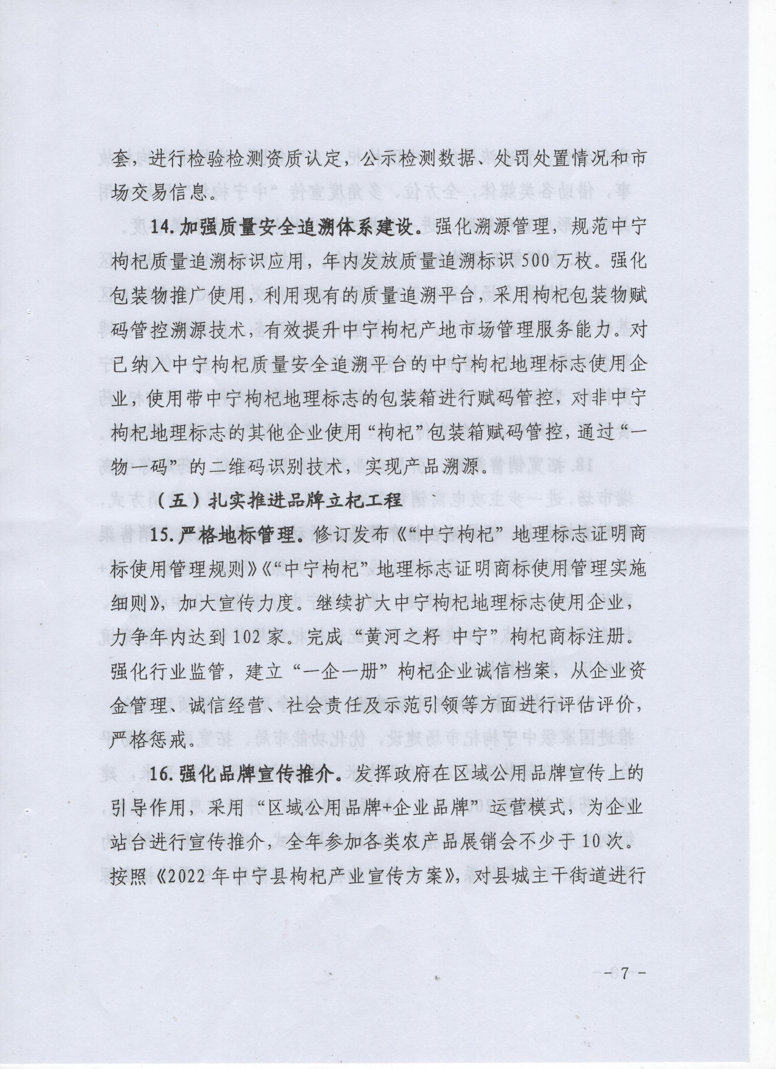 中宁县2022年推进枸杞产业高质量发展安排意见
