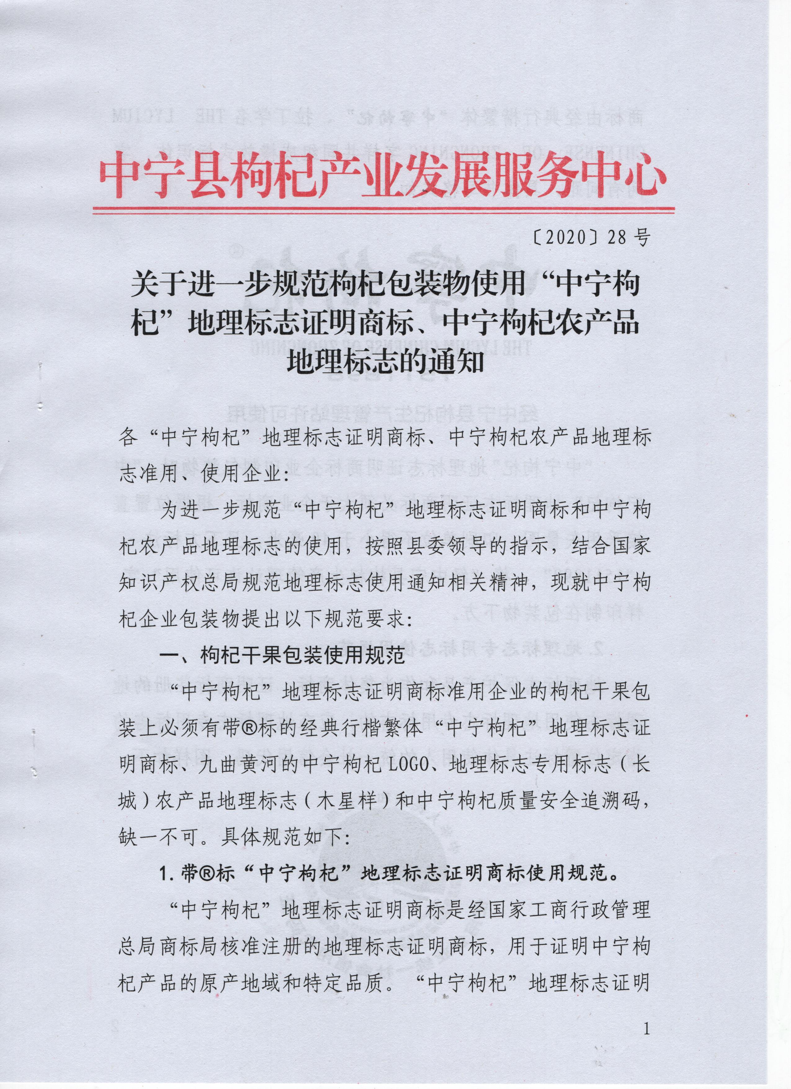 关于进一步规范枸杞包装物使用“中宁枸杞”地理标志证明商标、中宁枸杞农产品地理标志的通知